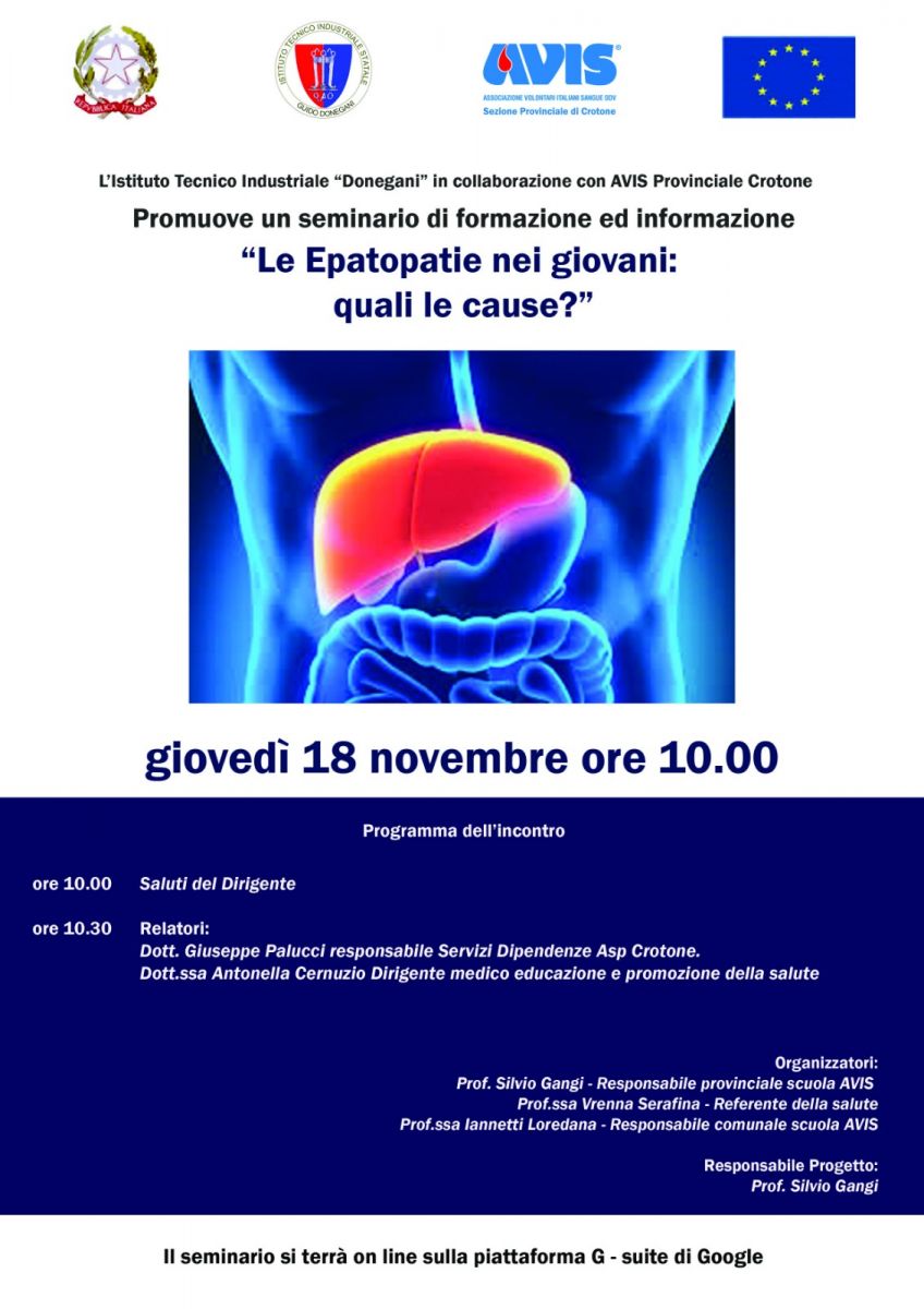 L'I.T.I. "G. Donegani" di Crotone in collaborazione con l'Avis Provinciale di Crotone ha organizzato un seminario medico-scientifico sulle patologie del fegato che interessano principalmente i giovani.